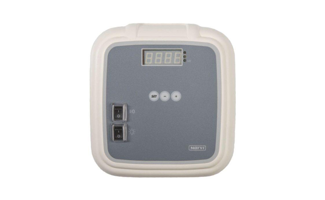 La Narvi T-2003 est une unité de contrôle pour poêle sauna électrique d’une puissance de 9 à 15 kW convenant parfaitement à un usage public ou domestique. Cette commande permet de contrôler à la fois la température de la cabine de sauna mais également l’éclairage grâce à un interrupteur. La Narvi T-2003 dispose d’un système de programmation journalier sur 24 heures. La température peut être réglée entre 40 et 115°C.